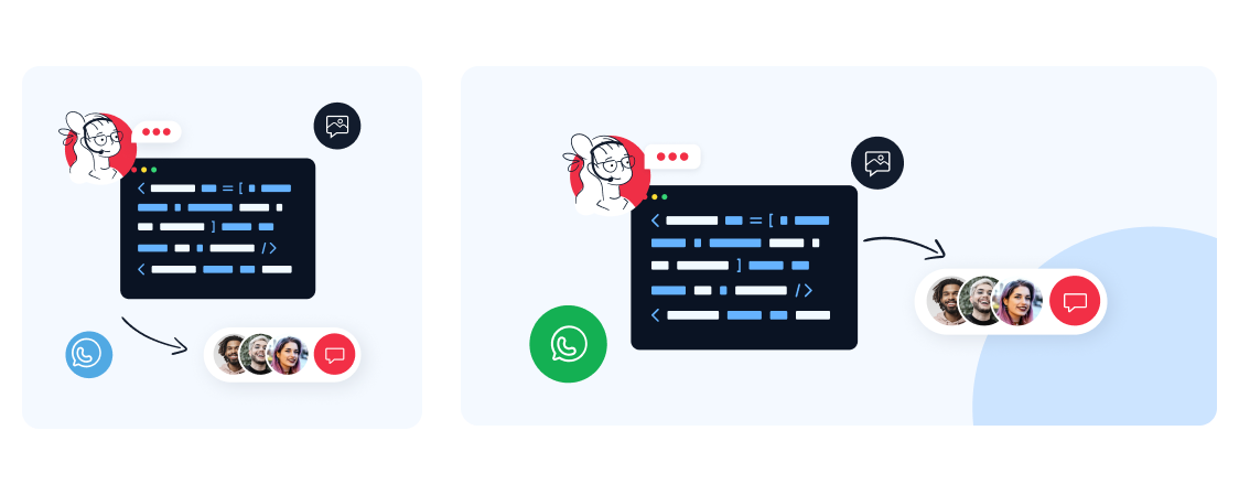 • Give your illustrations a title: An SVG title or image alt text is required on non-decorative illustrations so assistive technology can infer equal meaning as a sighted user would. For example, avoid a title that reads "WhatsApp Illustration - 01". Instead a title that says "Get started with our WhatsApp API" is preferable.